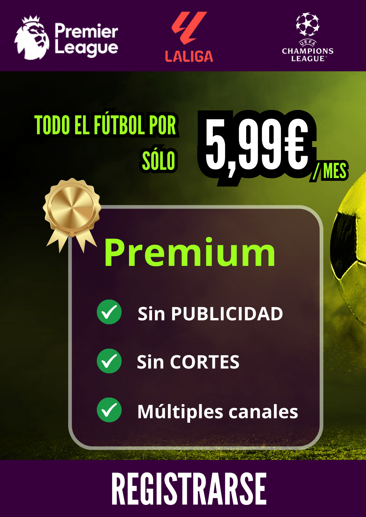 Con Premium accedes a todos los partidos sin publicidad, sin cortes inesperados y con múltiples canales disponibles, para que siempre tengas la mejor señal en cada evento.